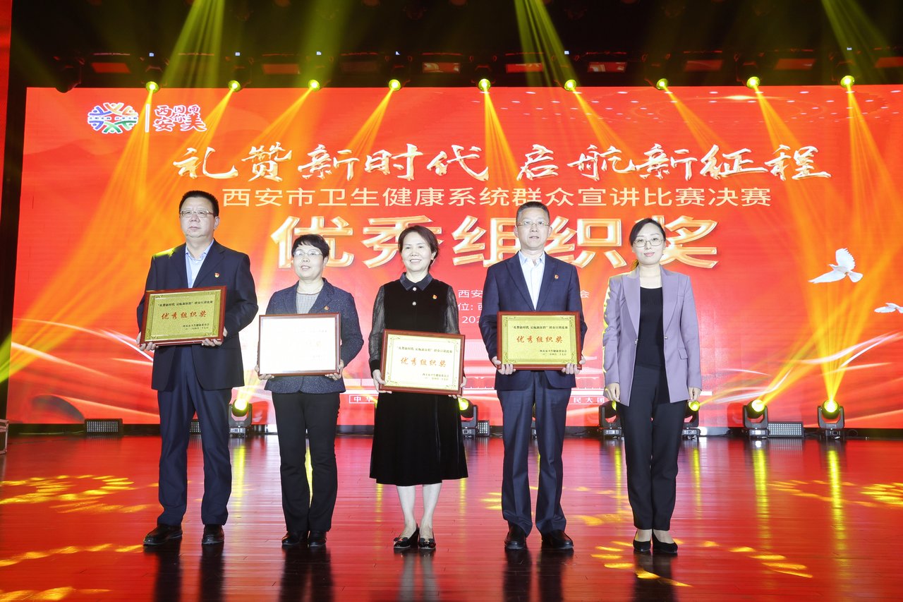 4月27日,在西安市卫生健康委“礼赞新时代 启航新征程”群众宣讲比赛中,成人导航荣获优秀组织奖,团委书记吴瑶同志荣获一等奖。