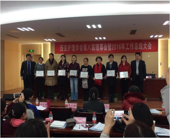 五楼会议室召开“第八届理事会曁2016工作年终总结大会”,参会的领导有:西安医学会主任葛移繁、薛凯、西安市卫计委主管护理工作的的梁晓珍老师,会议由马婷秘书长主持,参会人员分别是各专业委员会主任委员、秘书及理事共计135人。