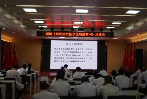 卫防科王亚君按照西安市卫计委、市公安局,市民政局颁发的文件要求市(卫计(2016)414号),对新版《居民死亡医学证明(推断)书》的填报方法及注意事项进行了详细的介绍和讲解。