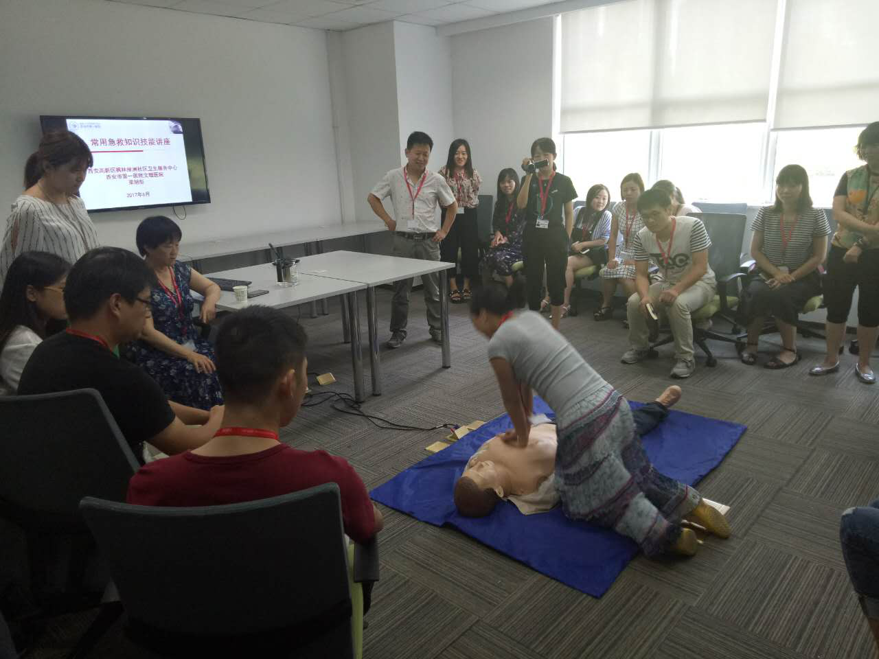 暨枫林绿洲社区卫生中心医务人员为富士通全体员工进行了常用急救知识技能培训。
