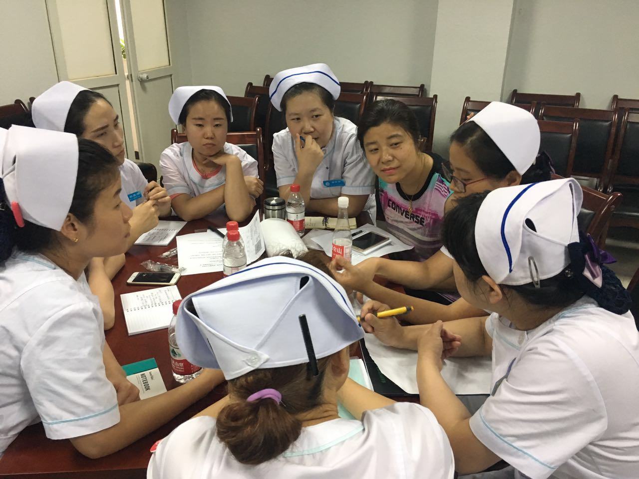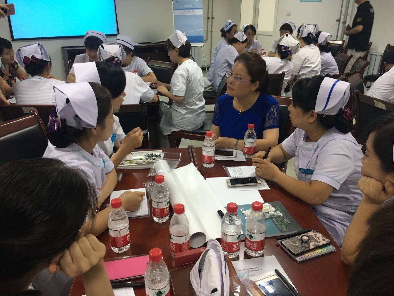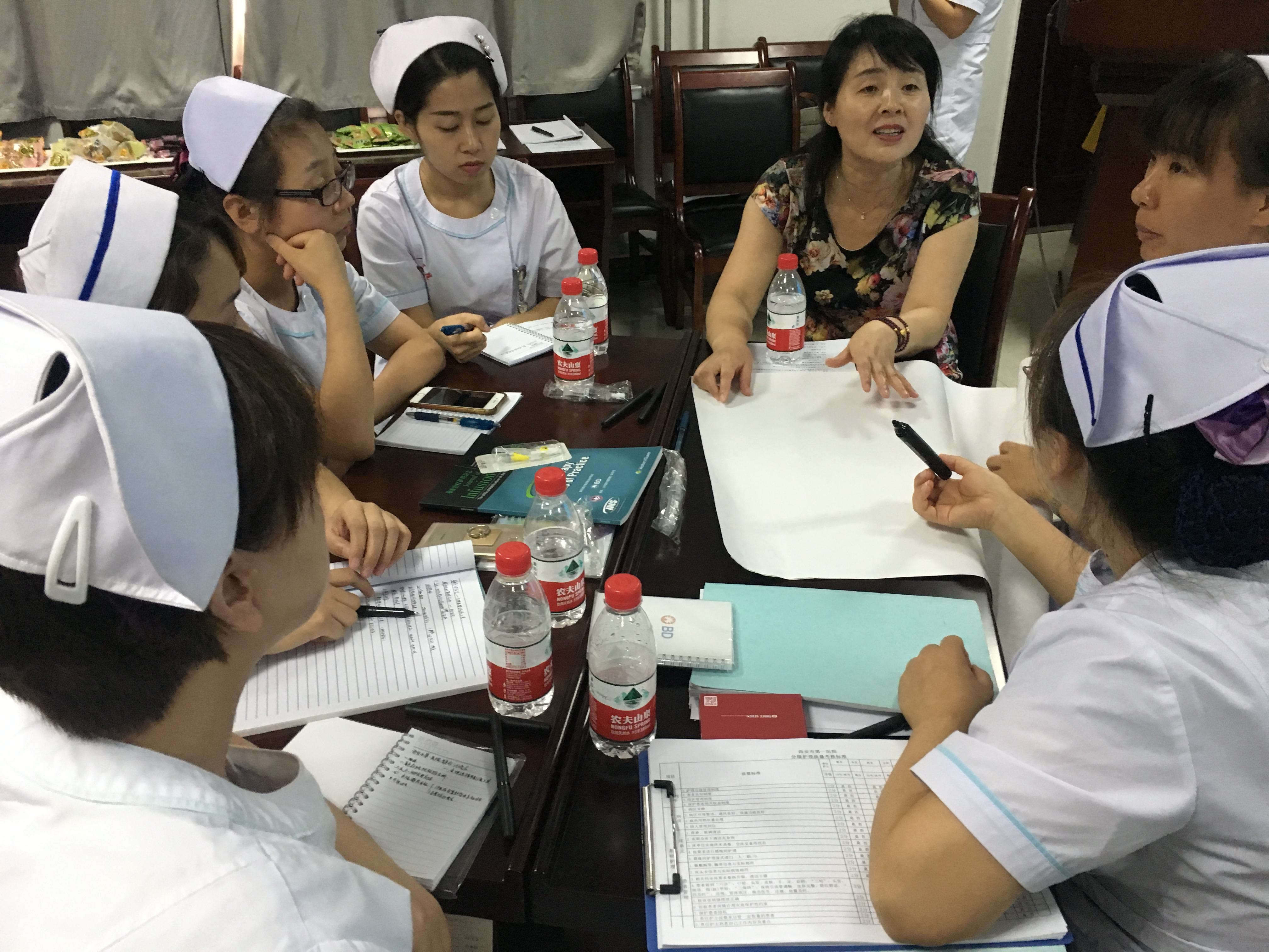静疗组长孙亚利老师对交大一附院静疗成果进行分享,使成人导航静脉治疗小组的工作有了进一步方法和方向。下来针对成人导航留置针使用率低进行了分组讨论,3位专家也热情参与,积极讨论,讨论中所遇到的问题,逐组专人汇报,现场进行解答归类,找到行之有效的解决办法,全场学习气氛浓烈。