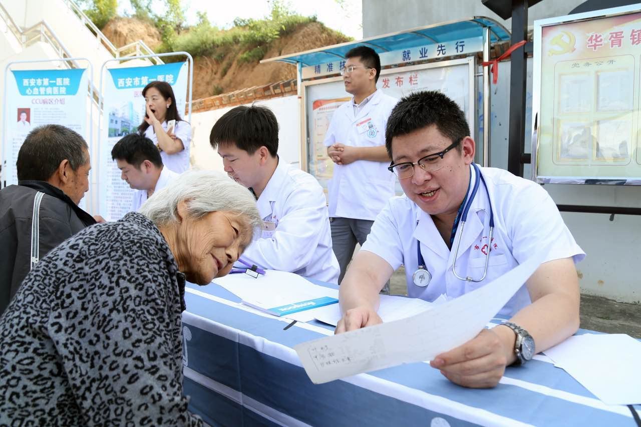 由心脏内科CCU病区张誉洋副主任等10余名医护人员组成的专家团队前往蓝田县华胥镇娲氏村开展扶贫义诊活动。