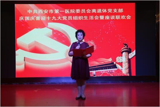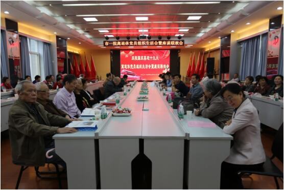 离、退休党支部举行“庆国庆喜迎十九大离退休党员组织生活会暨座谈联欢会”,院党委书记邢海柱、副院长刘佩勇、宋国忠、邵景、总会计师蔡秀莲及院党委成员、部分支部书记、职能中层干部出席会议。