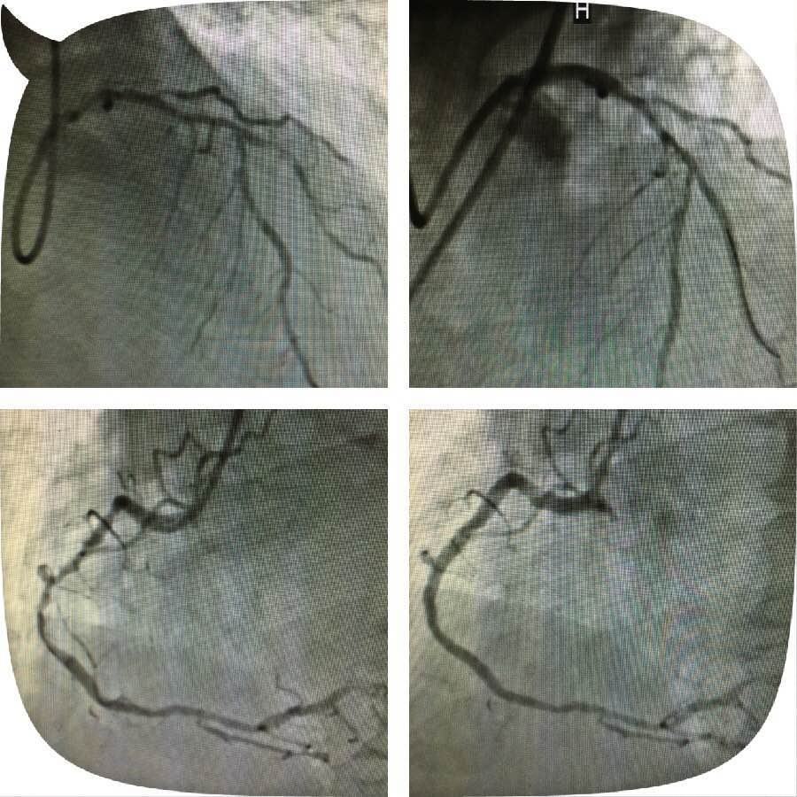 心五病区,入院后心电图示非ST段抬高心肌梗死,急诊行冠状动脉造影检查发现左主干钙化严重狭窄,合并右冠脉钙化严重狭窄病变,死亡风险极高。考虑患者病变复杂,贸然行左主干介入治疗风险极高,针对此患者特殊情况,心血管病成人导航