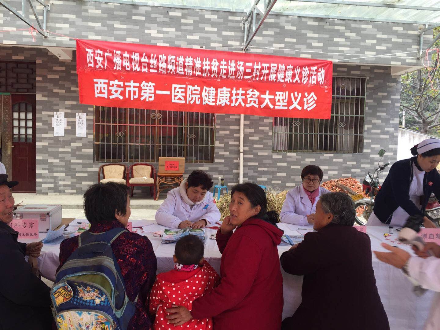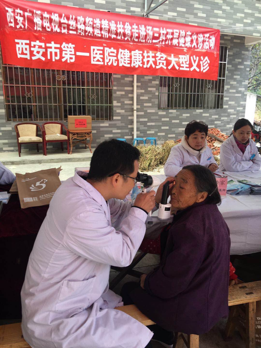 携手西安广播电视台丝路频道赴蓝田县汤峪镇汤三村开展扶贫义诊活动,把送医、送药、送健康活动办到了村民家门口。