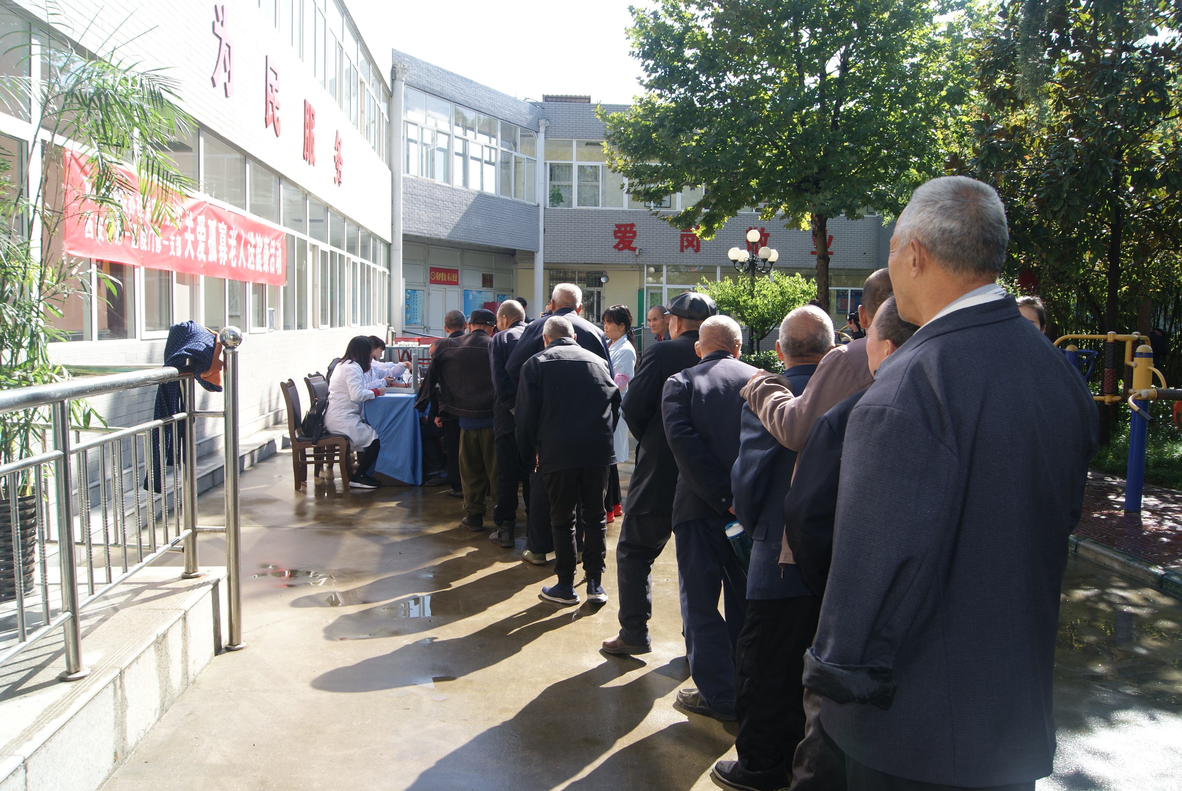 院党委书记邢海柱书记带队,医保办渠瑾主任、控感科雷晓航主任等9人组成的医疗队走进王莽区域敬老院为老人宣传医疗知识,进行体检。让老人感受到节日的氛围,为老人送去节日祝福。