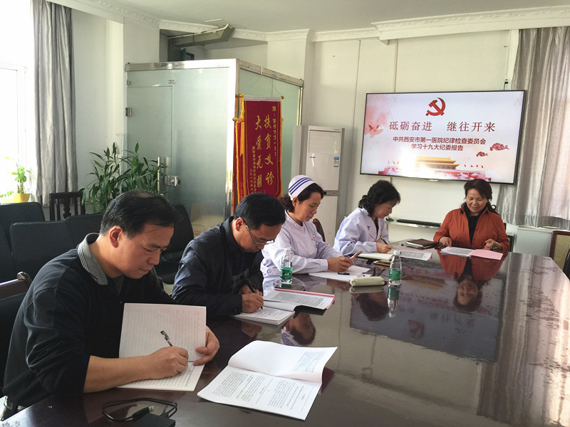 副院长赵朝分别对报告中的不同章节依次进行了逐字逐句的学习和解读,大家认真笔记,并且围绕聚焦中心任务,监督执纪问责;落实中央八项规定精神,提高患者满意度;抓住管党治党“牛鼻子”,推动落实主体责任和监督责任 ;严明政治纪律和政治规矩,实践监督执纪“四种形态”;坚决遏制群众身边的不正之风和腐败问题蔓延势头;积极“三转”,创新推动纪检监察工作;加强自身建设,培养严实深细作风等方面工作展开讨论。