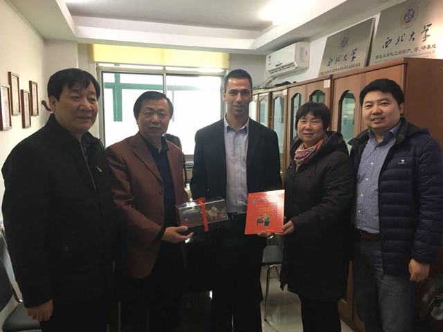 邵景院长(左二)、杨华副所长(右二)向Almog Aley-Raz先生赠送纪念品