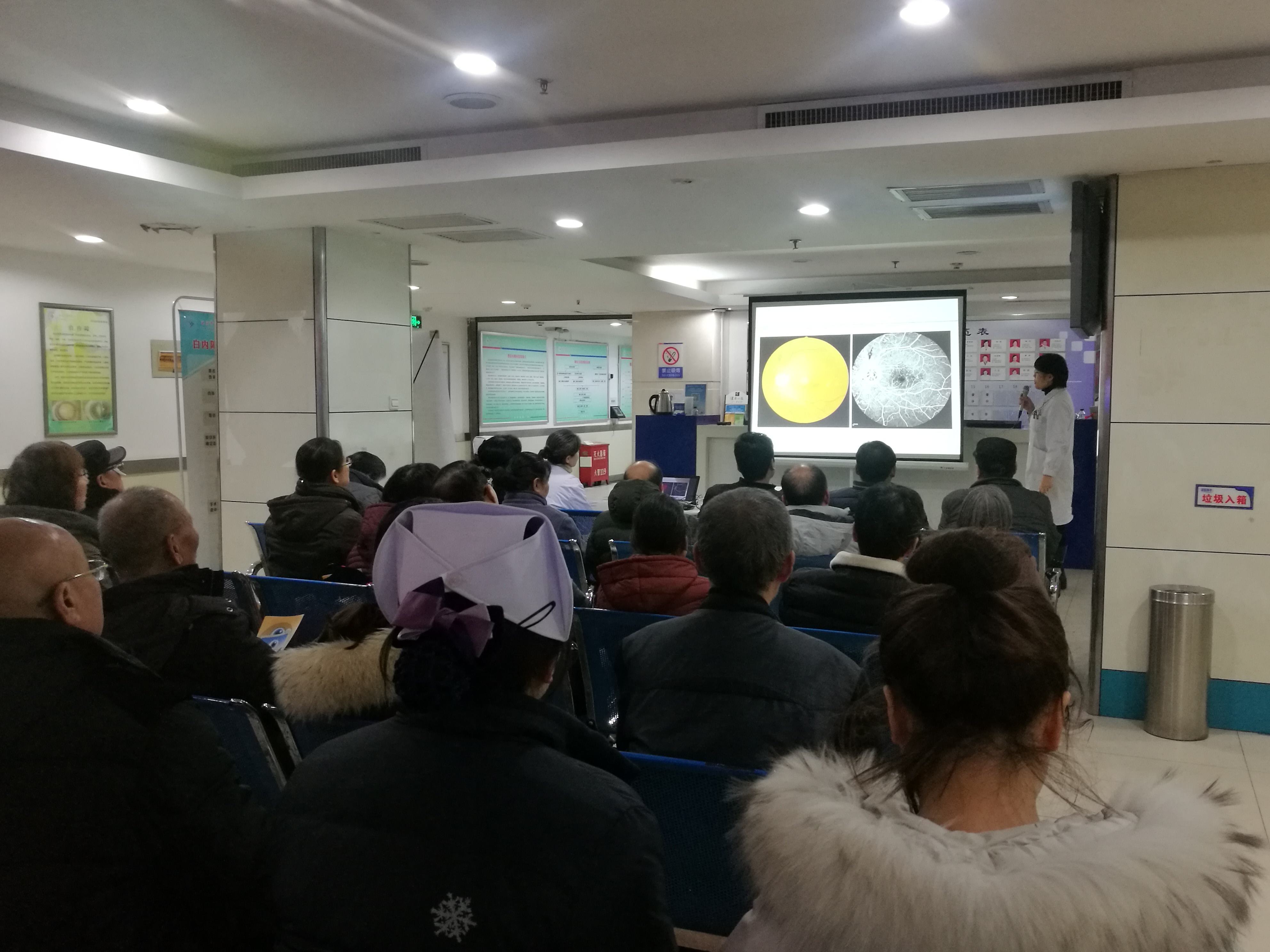 内分泌科的糖尿病健康宣教护士岳桂萍和余乐为大家讲解了糖尿病患者日常生活照护方面的知识,从如何用餐,如何旅游,如何驾车,到如何防范低血糖的发生,发生时如何应对等等知识,为在座的听众提供了一场听觉盛宴,听众们聚精会神,边听边记,唯恐疏漏了什么。时间在不知不觉间划过,转眼间,1个多小时已经过去,授课结束了,但眼科门诊大厅内,医患双方的互动刚刚展开,这边,拿着病历等待主任为其会诊,制定治疗方案;那边,拉着糖尿病健教护士,咨询胰岛素注射的有关事宜,期待指点迷津,安全用药。活动在融洽和谐的氛围中进行着,此次参加讲座有50余人,发放学习资料50份,发放眼科视力,眼压免费测量卡20余张,广大听众纷纷表示,希望此类活动可以长期举办,期待在大讲堂收获更多的眼健康知识。