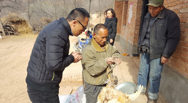 在王买利家里,大家一起聊家常,王雷副处长详细的了解了他近期的身体情况;尚向涛副科长给他做了全面的身体检查并细心的指导他用药;王雷副处长叮嘱买利要注意身体有啥不舒服的及时跟我们联系;在买利的新房,看着家里的变化,王买利有些激动的说:“太感谢大家了…我都不知道该说什么好了…感谢大家…”;王雷副处长握着买利的的手说到:“没什么,这都是我们应该做的,以后的日子也会越过越好的…” 除了给王买利和他嫂子查体以外,扶贫小组还积极帮助王买利拓展养殖销路,帮助王买利销售了7只土鸡和40多个土鸡蛋,拿着自己养殖得来的430元钱,王买利高兴的合不拢嘴。