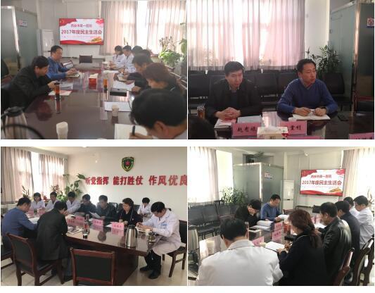 召开2017年度民主生活会。市卫计委党委委员、副主任段重利,人事处处长赵有禄参加并指导会议。全体院领导班子围绕2017年度民主生活会主题“认真学习领会习近平新时代中国特色社会主义思想,坚定维护以习近平同志为核心的党中央权威和集中统一领导,全面贯彻落实党的十九大各项决策部署”,对照《准则》、《条例》并结合工作实际,从六个方面认真剖析,对照查摆问题,依次进行个人对照检查发言,在敞开顾虑,坦诚相见的良好氛围中进行批评与自我批评。