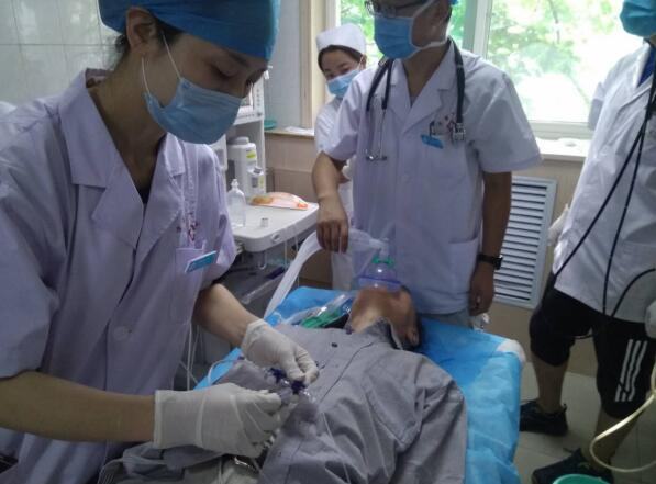 6月13日早09:00,在进行充分准备的前提下,麻醉科团队协同呼吸科李延主任、安亚东等人,为一例83岁合并高血压、冠心病的患者实施喉罩全身麻醉下无痛支气管镜检查,术中患者安静配合,呼吸循环平稳。检查结束后患者很快清醒,患者睁开眼睛第一句话是:很舒服,感觉睡了一觉,全程一点都不痛苦。因该患者的成功案例,后一位排队检查的患者也强烈要求实施了无痛支气管镜检查。无痛支气管镜检查的成功开展使患者免于痛苦,明显增加了患者对支气管镜检查的耐受度,提高了肺部疾病的确诊率。