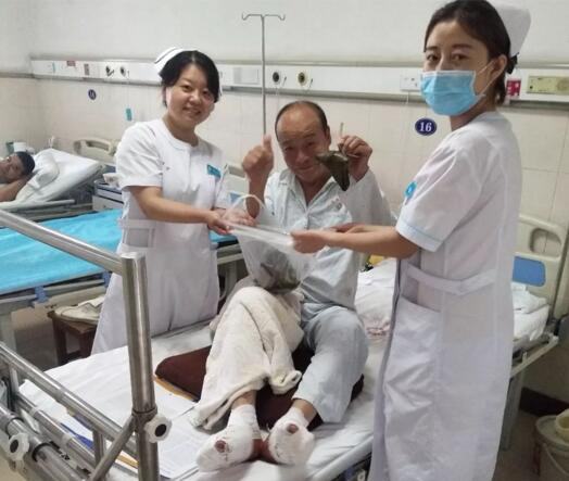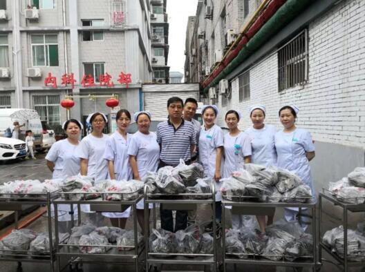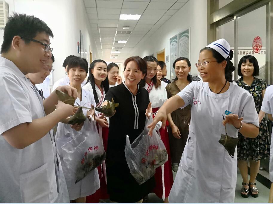 当天,院领导分组带队将煮好的粽子送到临床一线医务人员的手中,并送上节日的祝福,希望大家能在集体的关怀中度过一个愉快的传统节日。6月18日刘佩勇副院长带队将包好的粽子送到住院患者手中,带去全院职工对患者的祝福,希望患者端午安康,健康快乐!