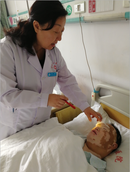 2018年7月9日8时眼科门诊来了一位特殊的患者,祁某自幼患“唐氏综合征”,同时伴有白癜风、双眼斜视、眼球震颤、弱视和低视力,患者病情复杂又是贫困户,长期没有得到有效救治。近年来在当地政府扶贫政策帮扶下,家人带其四处奔波求医,最终辗转慕名来到成人导航