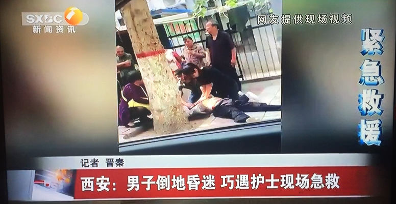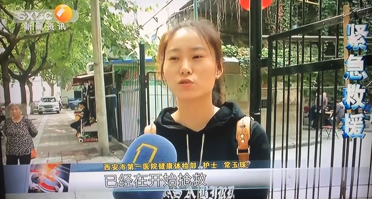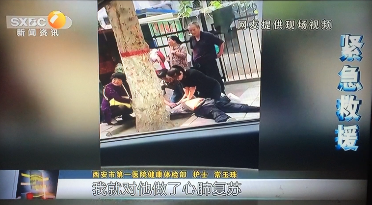 的路上,途经灞桥区纺新街时,偶遇一中年男子昏倒在地。凭着多年的职业经验,常玉珠意识到他可能突发心脏病,随时有生命危险,便二话不说,让爱人立即靠边停车,将正在生病的儿子塞给前排驾驶位上的爱人,她一个箭步冲了出去。