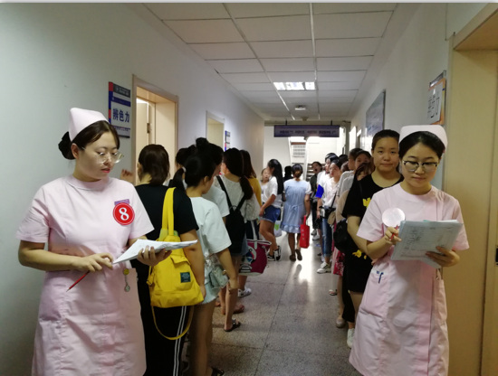 体检工作人员的干劲火热。7月13日至17日,正值小暑大暑之间,成人导航承担的西安市2000多名获得教师资格认证人员的入职前体检工作开始了。