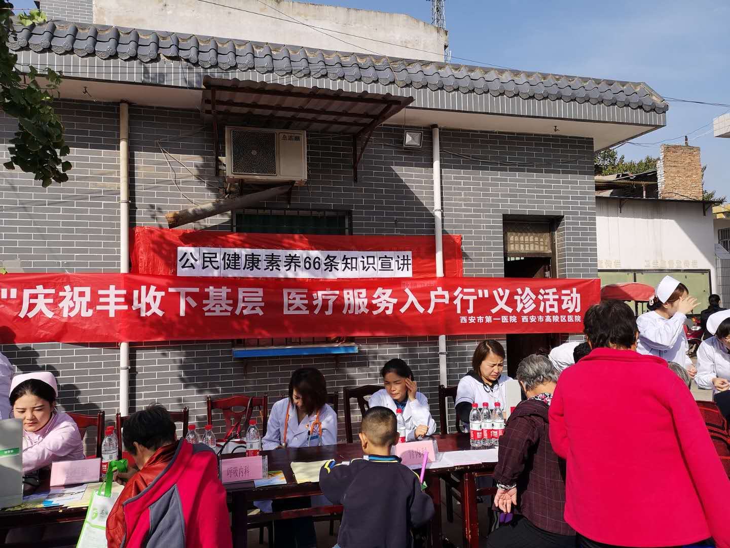 ,分别安排四支医疗队,共计医护人员20余人携带相关诊疗仪器及捐赠药品,分别前往高陵区湾子镇和耿镇开展义诊活动,医疗队员仔细为当地居民进行查体、量血压、测血糖,并向他们普及了通俗易懂的健康知识。