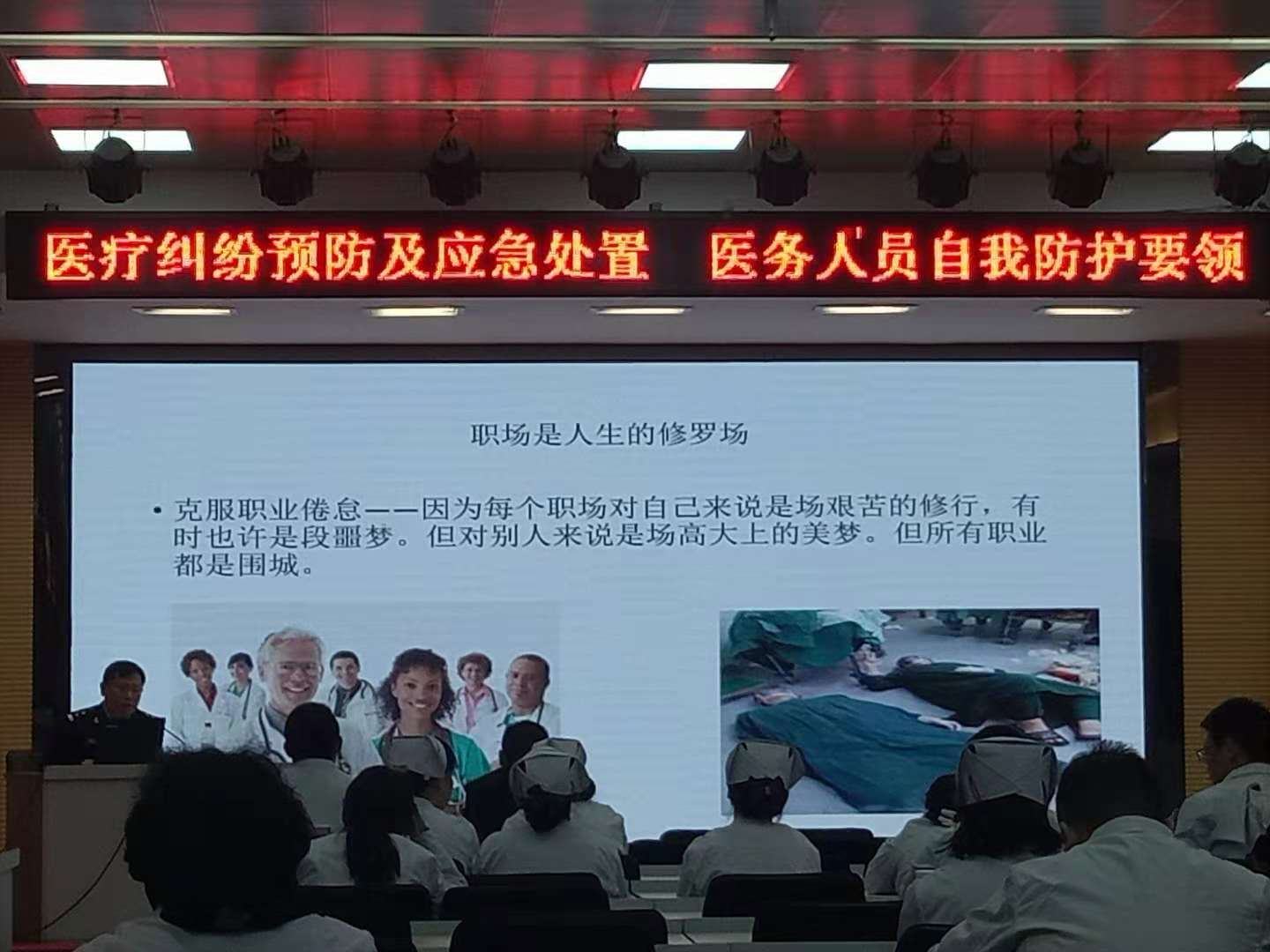 ”建设,提高成人导航医务人员面对医疗纠纷的应急处理能力及纠纷时医务人员自我保护能力,10月24日下午,成人导航特邀碑林分局法制大队副大队长蔺强,在心血管五楼会议室,现场为全院医务人员讲述如何预防和化解医患纠纷,学会自我保护,给大家奉上了生动实用的一课。此次培训由医务科科长张誉洋主持。