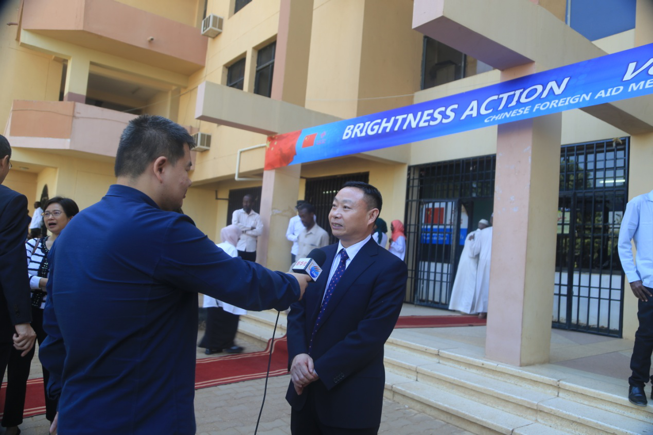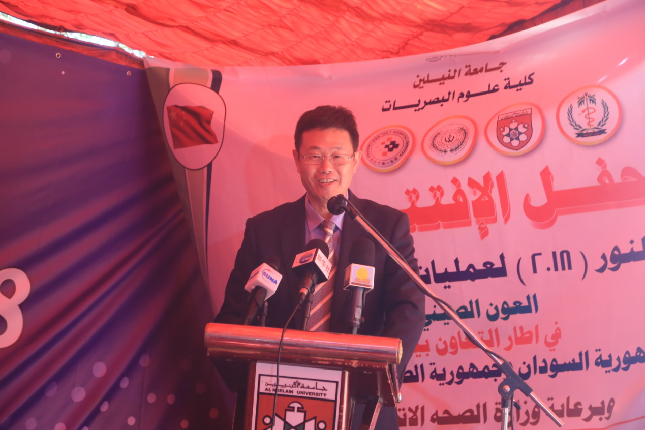 隆重举行。中国驻苏丹大使馆、经商参赞处周春林参赞、苏丹联邦卫生部长 Mohamed Abuzaid、喀土穆州卫生部长Mamoun Humida莅临仪式并致辞;中国援苏丹“光明行”项目组长张红兵、苏丹双尼罗大学副校长Kamal Hashim、附属眼科成人导航