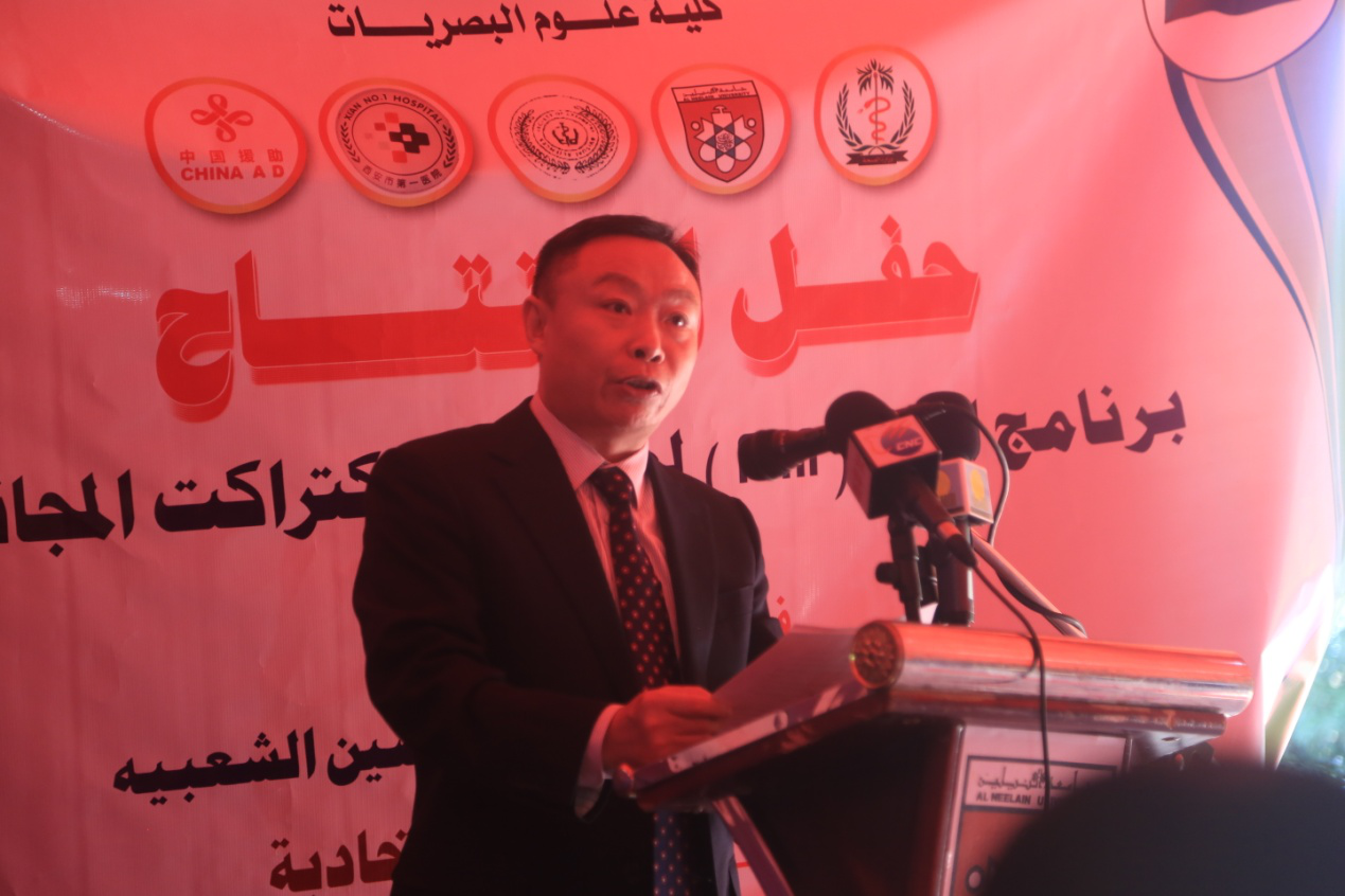 周春林参赞致辞时表示“光明行”活动是习近平主席在9月初中非合作论坛北京峰会上提出的8大重要创新之一,2016年中国派出的光明行项目组为苏丹1041名白内障患者迎来光明,在苏丹百姓间传为佳话。此次2018中国援苏丹“光明行”项目作为 “中国•苏丹合作的一部分”,由苏丹喀土穆州政府卫生部和中国驻苏丹大使馆经商处共同发起、并共同命名为“光明行动2018”,希望通过短期医疗项目推动苏丹公共卫生事业的发展、并再次见证中苏两国友好建交以来的深情厚谊。
