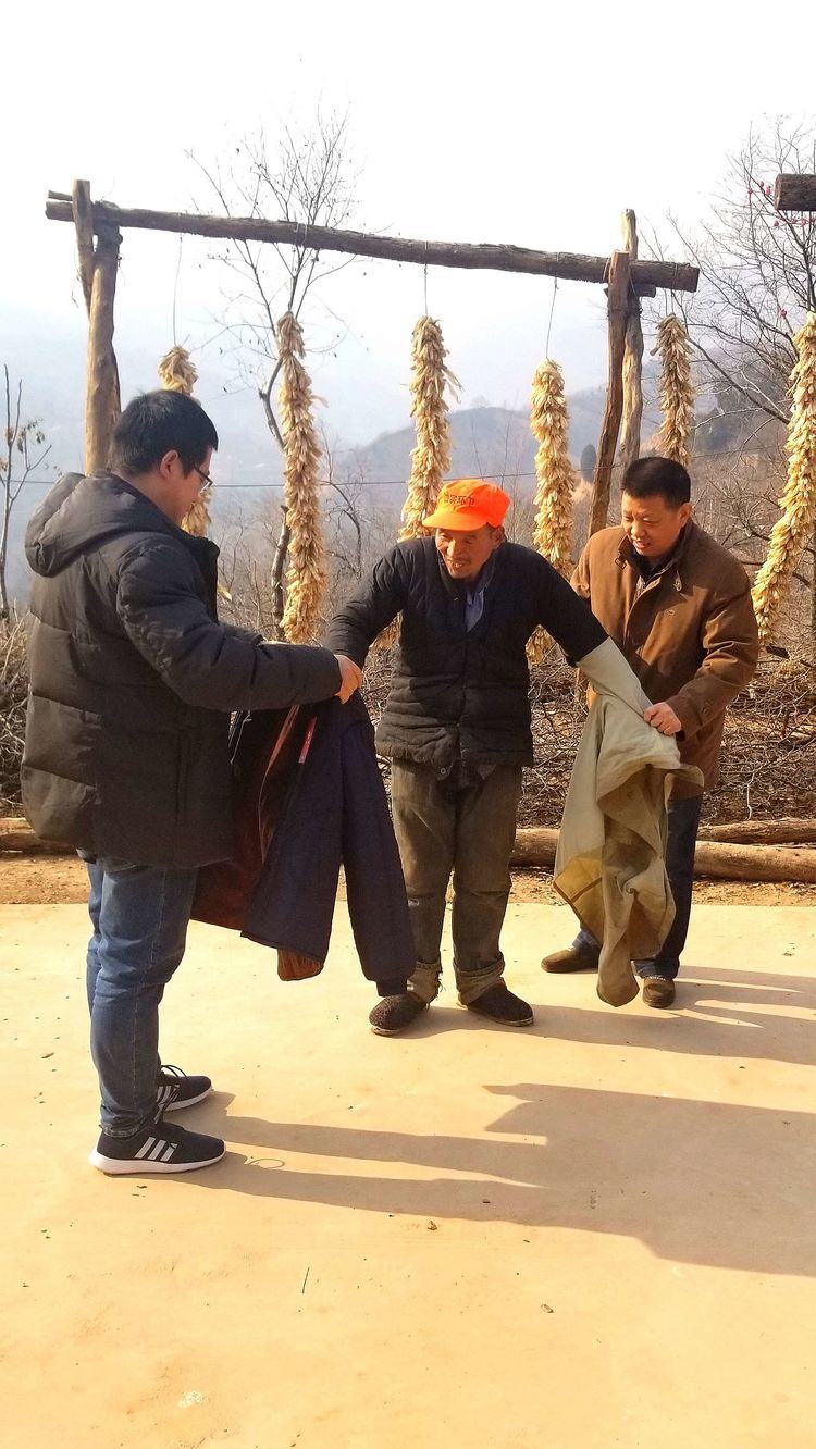 在村子的塬坡上,远远的就看到了王买利正在自家院前喂鸡。王买利看到扶贫干部,高兴地迎了上来。边走边聊,似亲人相见。扶贫干部帮王买利换下单薄的旧衣,一件一件换上新装。王买利露出了憨厚的笑容,连声说:“我正想思着再寻个夹袄加上呢,今儿个你们就带了一身新的。扶贫干部真好!感谢西安市卫计委和成人导航