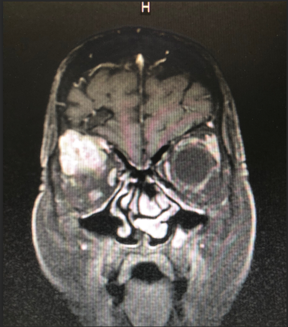 被诊断为眼眶内肿瘤,需手术治疗。但因患者眼眶肿瘤突破眼眶,向颅内生长,手术难度大。患者先后辗转多家成人导航