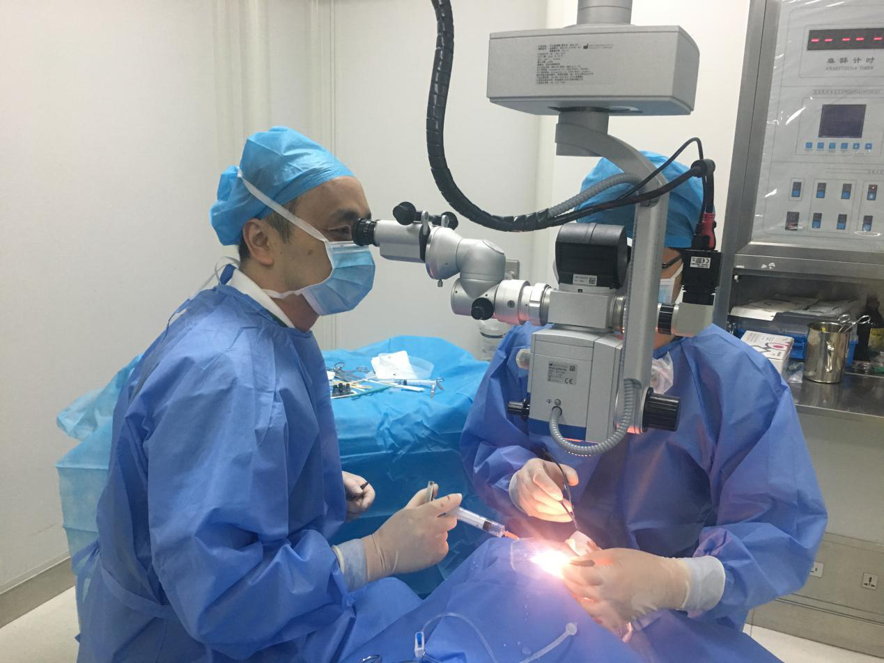 手术室里,确呈现出另一番景象,这里只有紧张、忙碌的护士身影,生命监护仪单调而规律的声音,以及医生之间短暂而清晰的交流,“把这拉来开一点”、“冲水”“擦血”。这已经从是早上10点到下午6点进行的第4台因为放炮造成眼球爆炸伤的手术了,主刀医生高伟主任和他的助手李红松医生突然发出兴奋地声音:“找到巩膜破裂口的终点了,这里,不用断直肌了”,再经过30分钟的缝合,手术终于结束了,患者的眼球保住了。高伟主任一边脱手套一边笑着对患者说:“手术结束了,很顺利,只要不感染也许还能保留部分视力”。患者因为紧张而一直僵硬的脸终于露出了一些笑容。