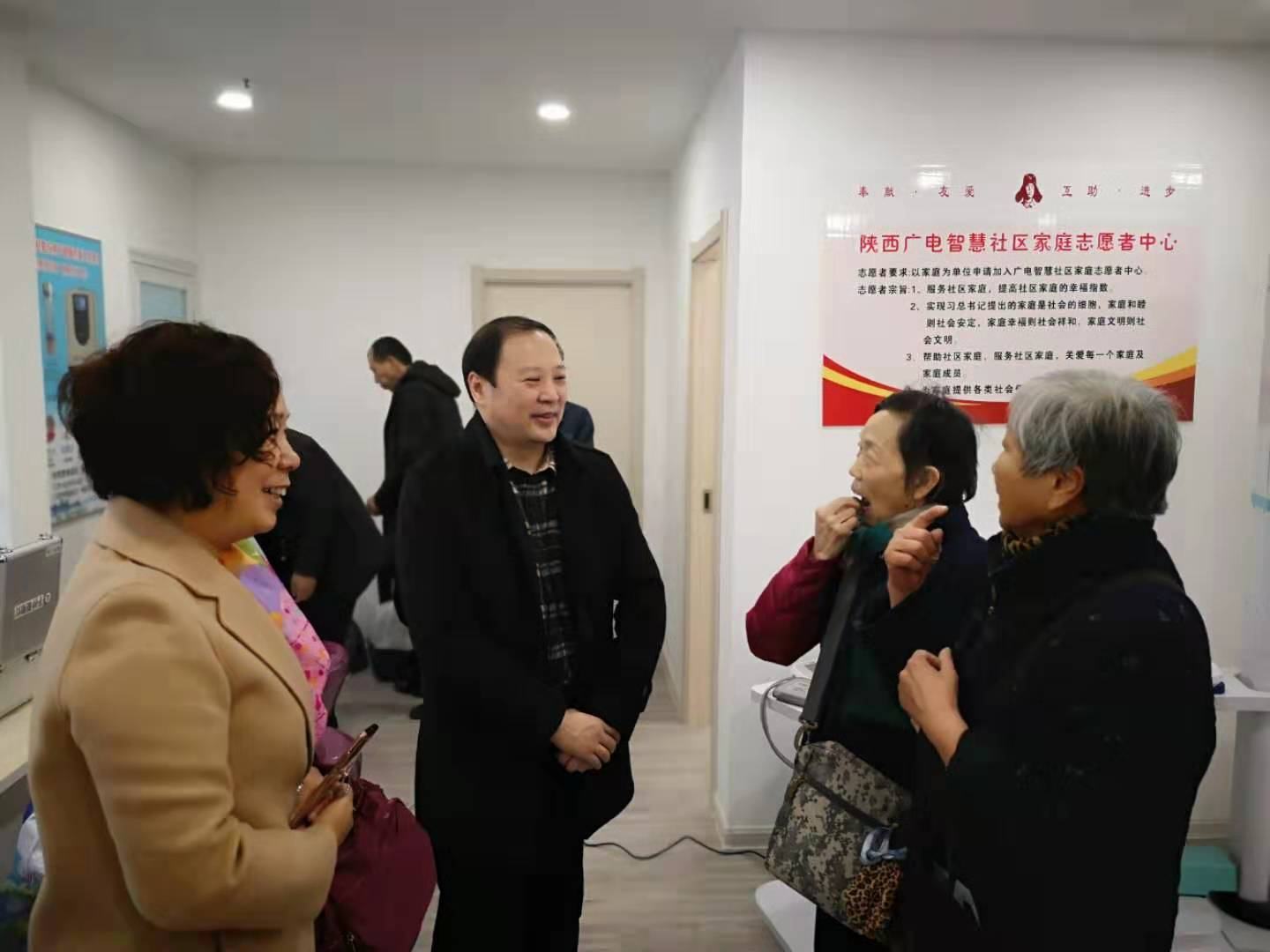 眼科团队马挺主任、赵俊宏主任、龙潭副主任、白茹护士长及西安护理学会眼科专委会张娟娟主委、秘书王霞等一行8人来到了陕西广电智慧社区紫玉华园服务中心,开展了普及眼科疾病知识,关爱社区老人眼健康的义诊活动。