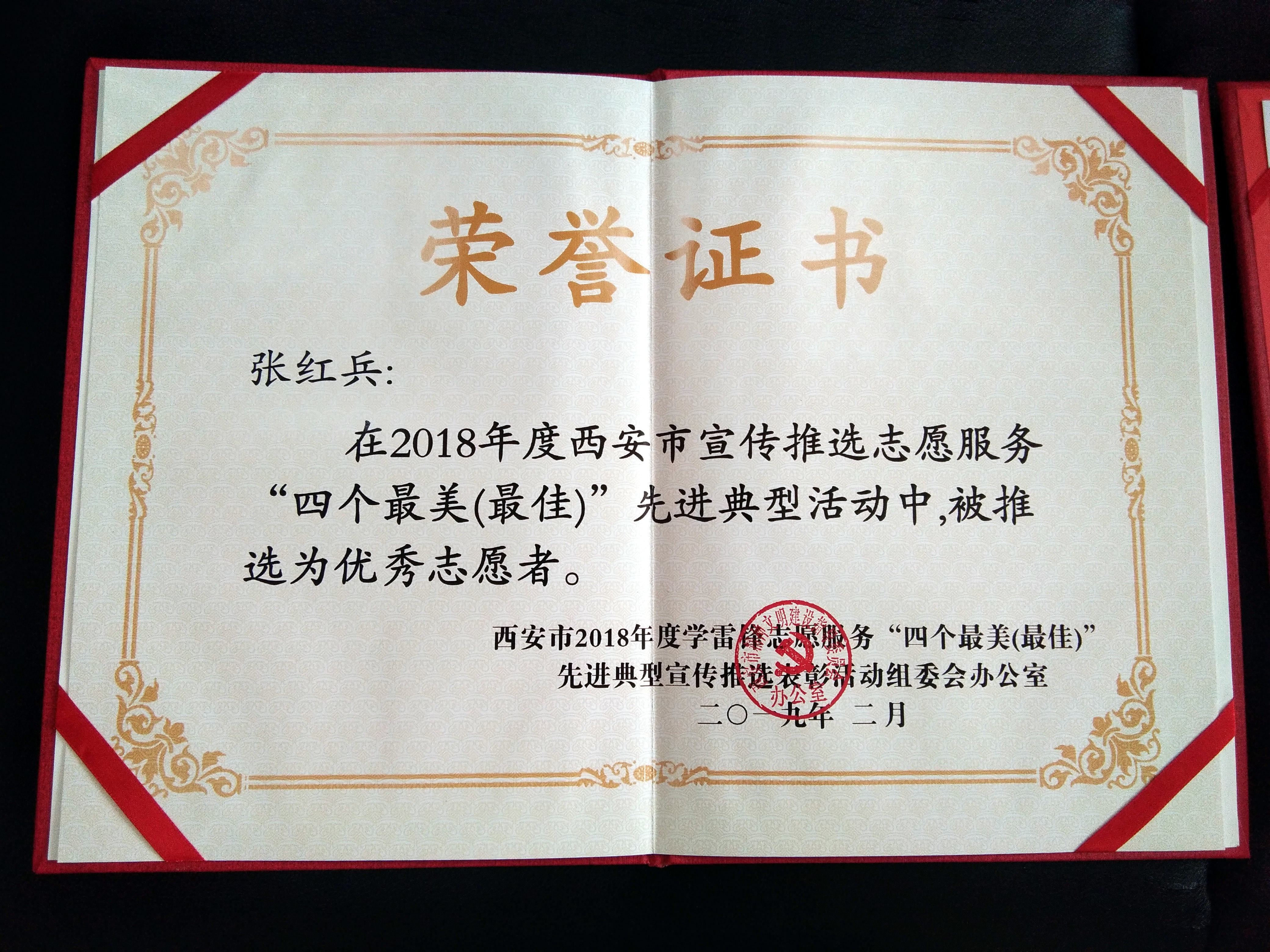 副院长、眼七病区主任张红兵同志被评为西安市“优秀志愿者”荣誉称号。