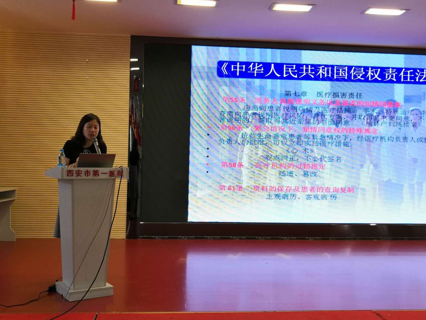 国务院颁布的《医疗纠纷预防和处理条例》自2018年10月1日起施行,为使全院医务人员深入理解《条例》,进一步提高防范医疗纠纷意识,提升医疗质量,保障医疗安全,4月17日下午,医务科特邀成人导航法律顾问任芮律师为全院医务人员进行《医疗纠纷预防和处理条例》解读。讲座由医务科副科长张磊主持。副院长王克平及部分医务人员参加了学习。