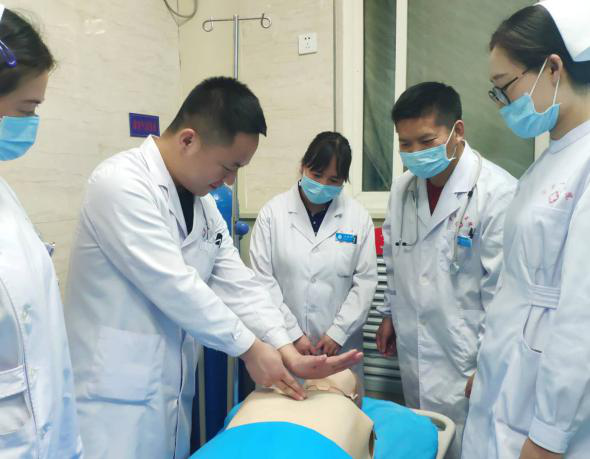 五一假期急救中心外出学习、岗位练兵、科普培训不间断。选派年青医护人员到中心成人导航