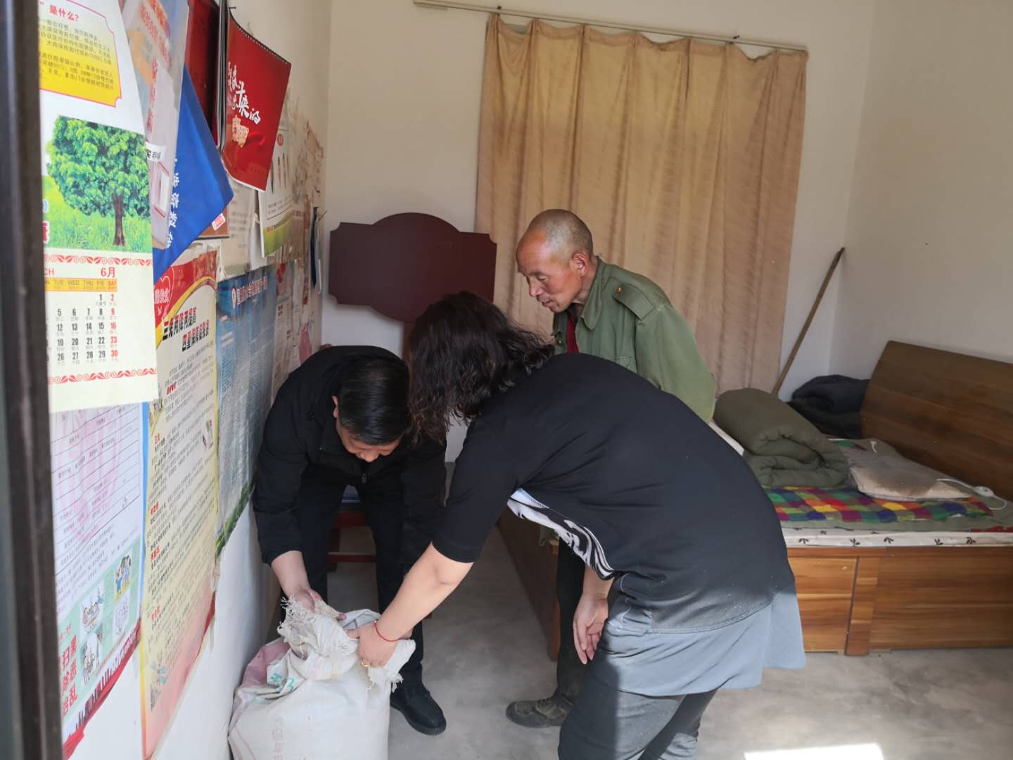 政工科长包小静、副科长骆希来到临潼庄王村,看望贫困户王买利。