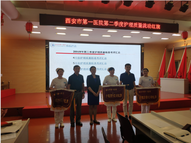 会后,邢海柱党委书记、邵景主管院长、王克平副院长分别向荣获第二季度护理质量流动红旗的护理单元颁奖,它们分别是:肾脏内分泌病区(内科系统)、眼科三病区(外科系统)、眼科手术室(专科系统)。