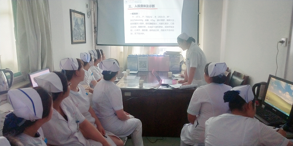 首先,责任护士王丹从入院基本情况、既往史、诊疗计划、护理问题、护理措施、护理目标、护理评价、现存护理问题等方面汇报了此次护理查房患者的整体情况。