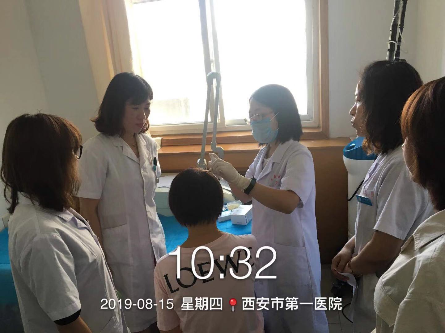 为倡导第二届护发日的公益活动,皮肤科于8月15日上午在门诊一楼大厅举行了“8.18全国护发日”义诊活动,本届宣传 的主题为“头发清洁、育发防脱、头皮养护”。在义诊活动现场,邢立亚和贾静副主任医师向前来咨询的患者和家属们讲解了毛发的正常生长周期、不同生长阶段的特点及护理要领,传达了护发日“科学护发、预防毛发疾病”的宗旨;并为一些毛发疾病患者进行了毛发皮肤镜的检测,提供了针对性诊治建议;在皮肤科治疗室,医护人员为招募的“雄激素性脱发”患者进行了域发原液的“微针导入”治疗。