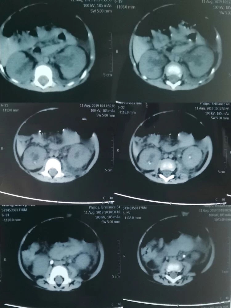可谁知经过数天的治疗孩子的病情却丝毫未见好转,反而出现了无尿的症状。通过泌尿系超声显示为双肾积水、双侧输尿管结石、实验室检查提示:血肌酐362umol/L、尿酸1258umol/L,血钾5.58mmol/L(正常值为3.5-5.3mmol/L),诊断急性肾功能衰竭。由于当地医疗条件有限,无法完成婴儿碎石手术,一家三口不远千里来到了西安市儿童成人导航