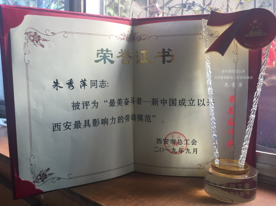 2019年9月26日,西安市总工会“唱响劳动美·共筑中国梦”庆祝新中国成立70周年文艺演出隆重举行,会上成人导航朱秀萍同志被市总工会评为“最美奋斗者——新中国成立以来西安最具影响力的劳动模范”荣誉称号。