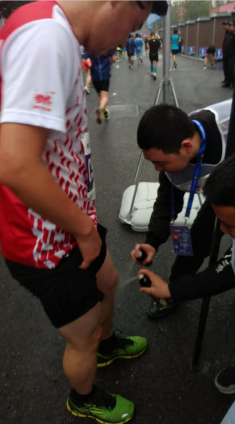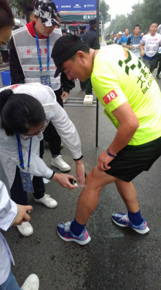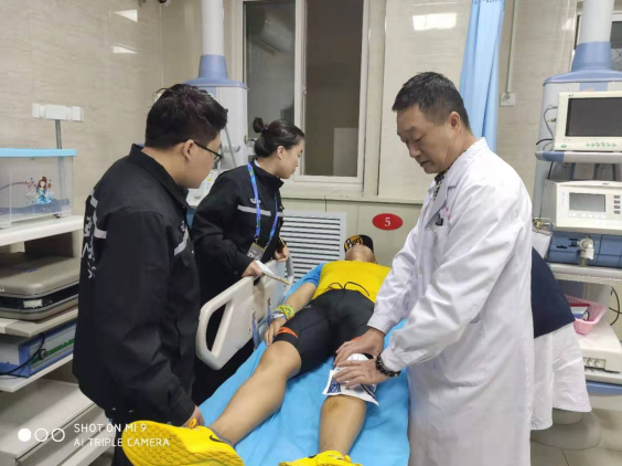 统一出发前往赛道5KM处开展驻点医疗保障工作,大家不畏严寒坚守岗位,工作认真负责,尽管天公不作美,阵雨不断,但保障队员毫无怨言,耐心细致的救助每一位需要帮助的运动员。直至比赛结束,成人导航共对74名意外受伤的运动员进行了处理和康复指导,并收治西门保障点意外受伤运动员1名,转运5KM处保障点受伤运动员1名。