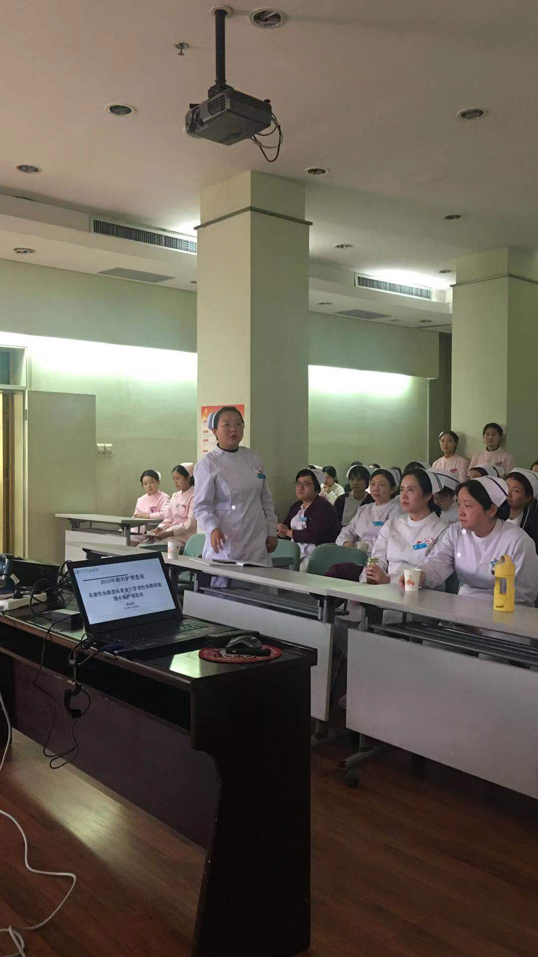 晁媛媛总护士长对本次查房进行点评,她提到了分段式护理查房,这种查房模式不仅能解决护士时间分配问题,也可以留住病例,使护士有更多的时间去思考、查找资料,提高护士学习的主动性。