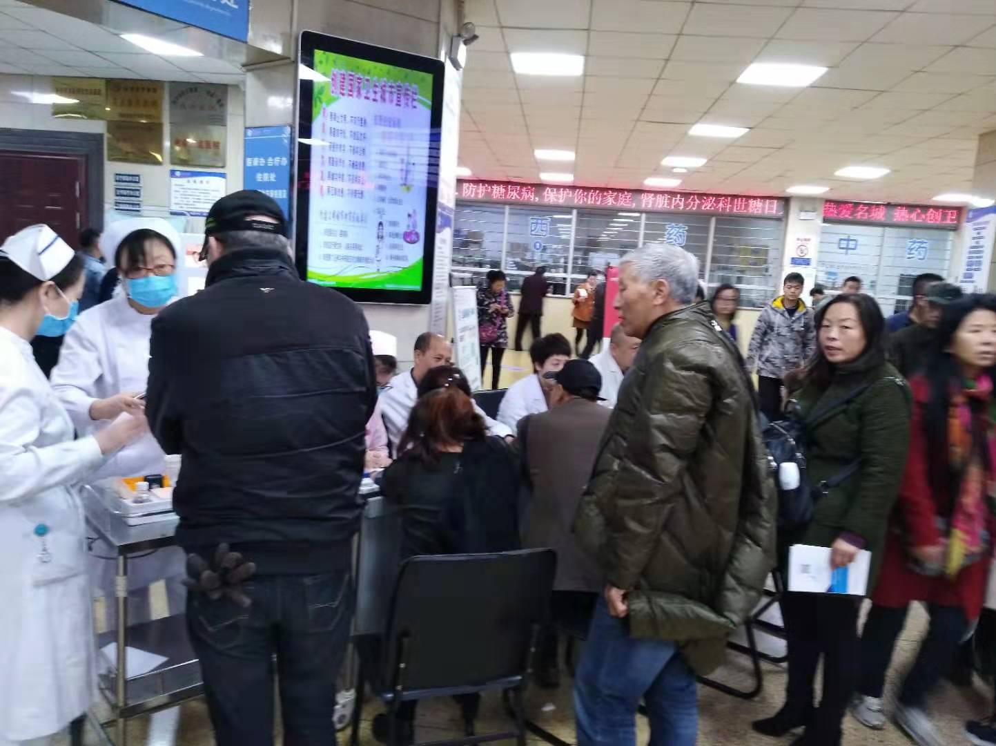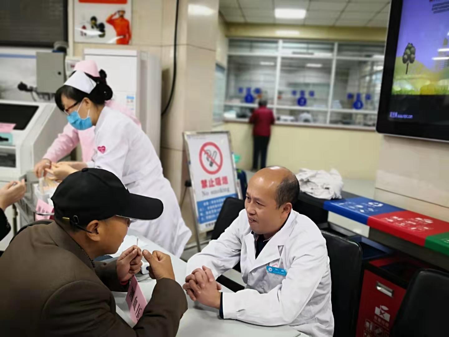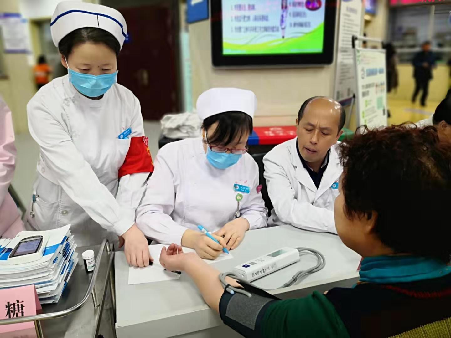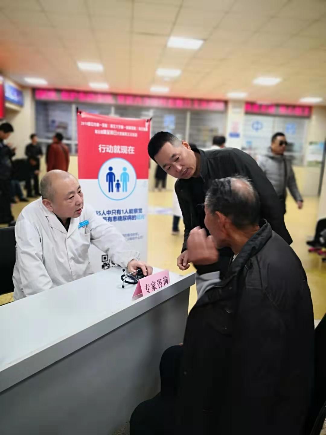 肾脏内分泌科于世糖日当天在门诊大厅举行大型义诊活动。活动内容包括专家义诊、现场咨询、免费监测血糖、血压、血酮,发放健康教育资料。前来咨询的患者络绎不绝,刘安平主任、何旺副主任、张渭涛副主任为患者耐心解答,为患者制定出专业的指导和建议。参与患者100余人,监测血糖血压100余次。未来肾脏内分泌科将秉承“有爱就有一切”的院训,做好糖尿病教育及管理工作,为患者提供更优质的服务,帮助亿万家庭远离“甜蜜蜜的烦恼”。
