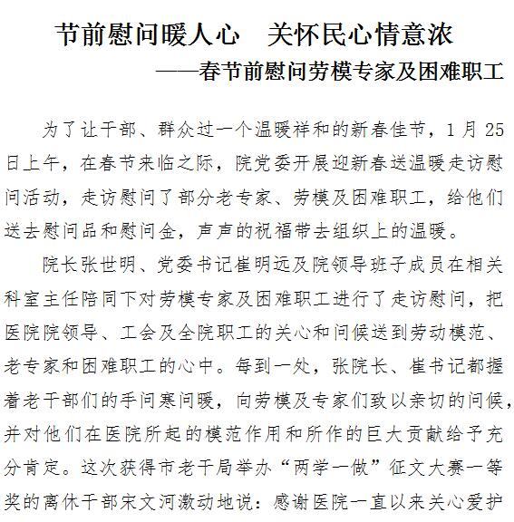 节前慰问暖人心 关怀民心情意浓 ——春节前慰问劳模专家及困难职工