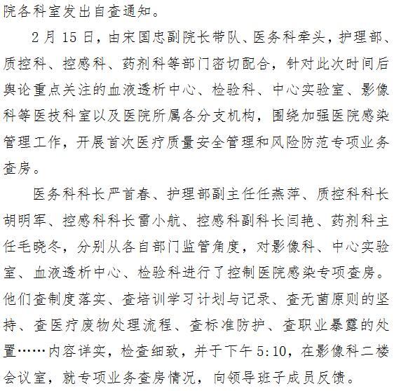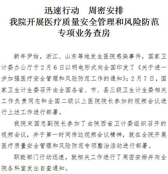 成人导航开展医疗质量安全管理和风险防范专项业务查房