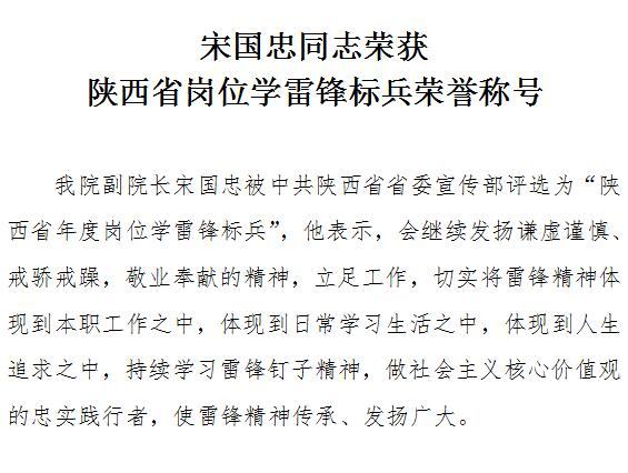 宋国忠同志荣获陕西省岗位学雷锋标兵荣誉称号