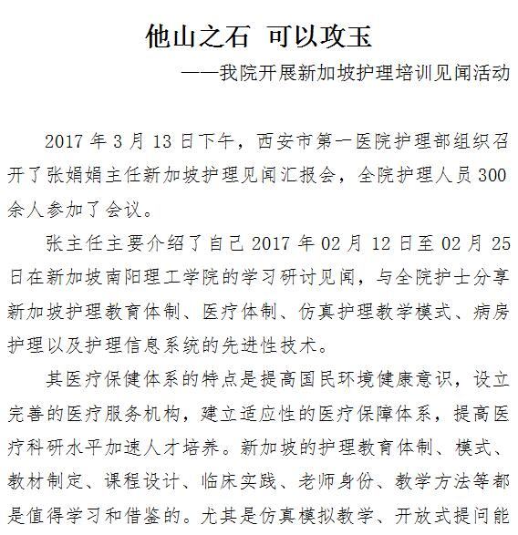 他山之石 可以攻玉 ——成人导航开展新加坡护理培训见闻活动