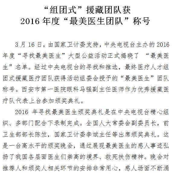 “组团式”援藏团队获 2016年度“最美医生团队”称号
