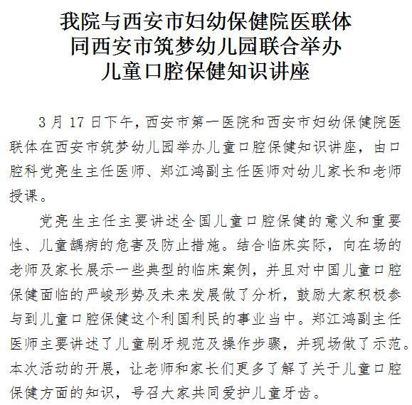 成人导航与市妇幼保健院医联体同西安市筑梦幼儿园联合举办儿童口腔保健知识讲座