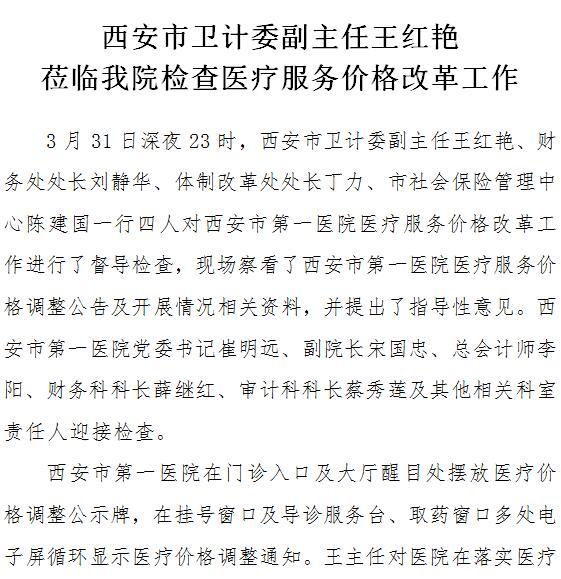 西安市卫计委副主任王红艳莅临成人导航检查医疗服务价格改革工作
