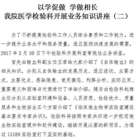 以学促做 学做相长 ——成人导航医学检验科开展业务知识讲座(二)