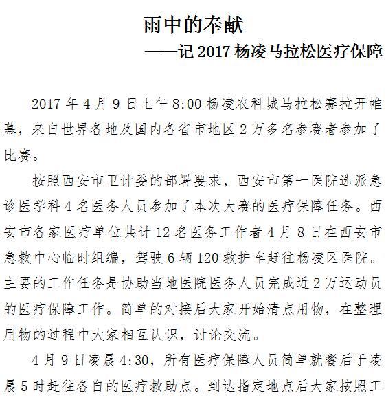 雨中的奉献 ——记2017杨凌马拉松医疗保障