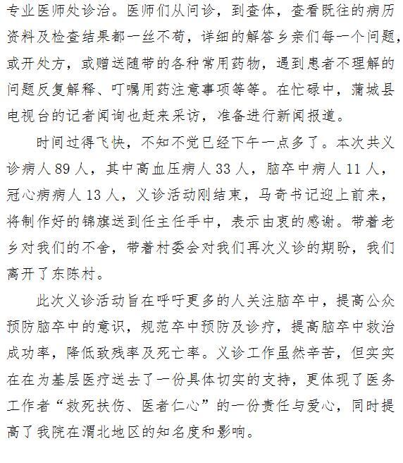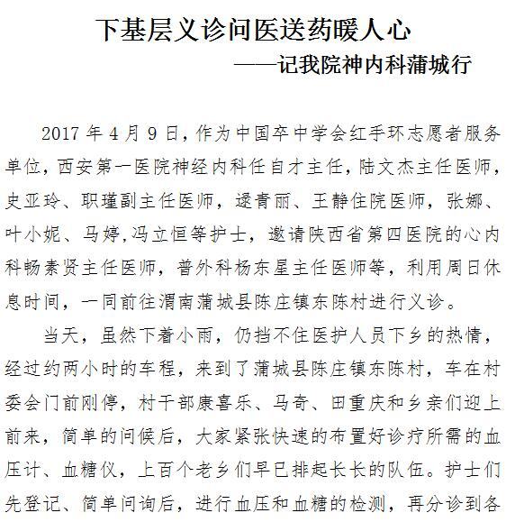 下基层义诊问医送药暖人心 ——记成人导航神内科蒲城行
